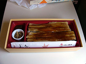 【↑ 広島駅で購入した名物駅弁、あなごめし。ま、フツーです(^^;;】
