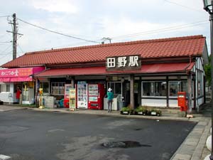 典型的な田舎駅スタイル、2面3線の田野駅は、島式ホームから線路両側に跨線橋が伸び、片方は駅舎へ、片方は道路へ。無人駅化された後、線路のどちら側でも乗降できるよう改装されたらしい。もう1面・1線は駅舎とは反対側にあり、赤錆びていて未使用かと思いきや、後日通った際には宮崎方面の列車が停車していました。交換する都城方面行きは島式ホームの片線に進入。どーゆー交換の仕方なんだ?