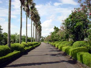 公園入口の案内図を見ると、球場は公園の北端で、駅は南端の公園南口に接している。駅から公園南口までは目の前の国道を渡るだけの徒歩1分でも、広大な公園の南端から北端までは…遠いなんてもんじゃない。南国の猛暑の中を、汗ダラダラの熱中症気味になりながら歩くこと25分、ようやくスタジアムにたどり着く。