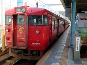 【↑ 南宮崎まで一駅間だけ乗車した713系。《サンシャイン》の愛称で、宮崎空港へのアクセス快速に運用される。車内は宮崎エリアの普通列車では唯一の転換クロスシート、豪華仕様】