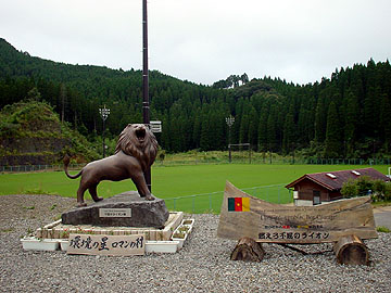 鯛生金山付近から国道442号に入り、役場のある中心部へと走る途中で分岐すると…。標高がぐんぐん上がっていく山道を登った先に、ありました。2002ワールドカップの際に話題を集めた、カメルーンのキャンプ地:鯛生スポーツセンターが。あれこそ、“中津江村”の名を全国に知らしめた大イベントでしたからね。あのキャンプがなければ、おそらくこの旅で中津江村を訪れることはなかったでしょう。