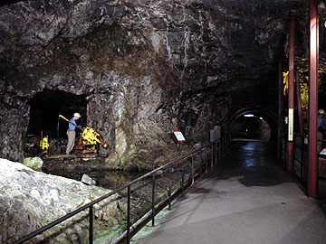 まずは、村内唯一の観光地:鯛生金山へ。昔の坑道を周遊ルートとして整備した、観光客向けの廃鉱山ですね。案内説明が聞けるトランシーバーを借りて入坑するというギミックが、何となくそれっぽい(笑)。坑内は当時の施設に人形が加えられ、採掘光景を再現して見せるという全国各地の観光鉱山にありがちなパターン。坑道の規模が比較的大きいこともあり、それなりに楽しめましたよ。とは言え、このテの施設でいちばんだと思われる、秋田県のマインランド尾去沢には敵いませんが。
