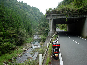 来た道を戻り、中津江村・栃原から国道387号線を快走して熊本県・小国町の中心、宮原を目指す。エンジン不調が気になるけれど、どうしようもない。小国まで行けばバイク屋の一件ぐらいあるだろうし、何かあればそこで大休止…には、なりたくないな。