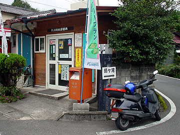 途中、郵便局がありそうな勘がして黒淵という集落に寄り道してみると、いい感じの簡易局がありました。で、その横の路地には“鍋ヶ滝”という案内表示が。かなり気になったものの、エンジン不調と時間の関係もあって先を急ぐことに。