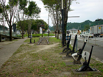 ちなみに、この道の駅・小国ゆうステーションは、かつてのJR宮原線の終点・肥後小国駅の跡地を整備したもの。片隅にはその名残の駅名票や転轍機、短い鉄路が保存され、館内では宮原線の資料・写真なども閲覧できる。