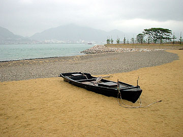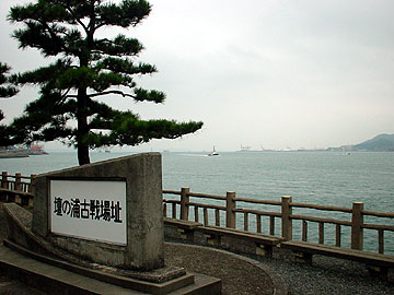 国道を挟んだ目の前には【みもすそ川公園】が設けられ、攘夷戦争で長州藩が外国船に発砲した砲台跡も近い。レプリカの大砲が一門、展示されているだけですが。公園から関門海峡を眺めたあたりが源平壇ノ浦合戦の古戦場跡だそうで、しばし海を眺める。でも、海の古戦場跡は陸地のそれ以上に現実味が感じられない。。。