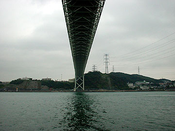 【↑ (左)観潮遊歩道から見た関門橋 (右)真下から見るとこんな感じ】