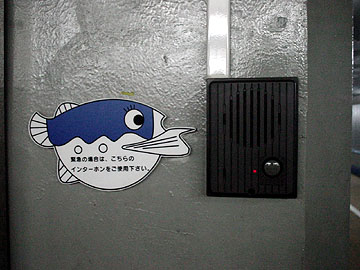 【↑ (左)トンネル内設置の緊急時用インターホン (右)下関側入口】