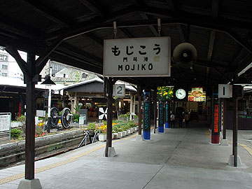 小倉からJRで門司港へ。まずは有名な駅構内0kmポスト(門司港駅は九州鉄道発祥の地)などを眺めつつ、駅自体が観光スポット化している様子を見て回る。国の重要文化財にも指定されている駅舎は大正3年の建築で、ヨーロッパの駅をモデルにしたネオルネッサンス風・木造2階建て構造が特徴的。貴賓室があった2階部分は資料展示館として解放され、入場は自由(入口は改札外なので入場券がなくともOK)。