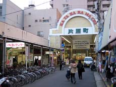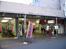 【↑ 商店街の一角に、ひとつの商店かのごとく駅が入居している…という感じ】