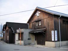 *(左・中)醤油蔵通りとは離れた市街にある丸島醤油。直売所もあり、工場見学もできるとか (右)ヤマヒサの倉庫