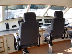*(左)スーパーマリン操縦席 (中)2階部は誰でも利用できる豪華サロン (右)1階の一般客室