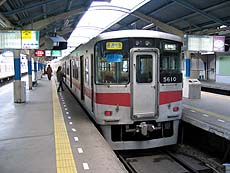 乗車したのは、山陽電鉄5000系。両側2列の転換式クロスシート車で、実はこれがお目当てでした。阪神のロングシート編成だったら乗るのをやめようかと思っていたので、たまたま入線してきたのが5000系でラッキー(^^;;