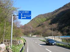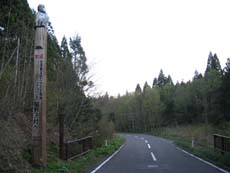 いっぽうこちらは、冬季閉鎖となる国道338号を脇野沢へと急ぐ。路面は立派な2車線が続くものの、クルマの通った形跡と言うか、人間の足跡のようなものがほとんどない。生活道路ではない、観光客向け(&林業のため)に開通した区間だけに、観光シーズンの一時以外、交通量は激少なのでしょう。数十キロに渡って人の暮らしが存在しない山間部にやたら立派な道路だけが伸びているのは…何とも違和感のある光景でした。結局、脇野沢までの間、見かけたクルマ(人間)は皆無。。。“この先、電話あり”の標識に少しホッとしたりするも、そこは見晴らしの良いところに作られた展望台。あるのはベンチと、電話ボックスが建っていたらしいコンクリート台座のみ…。携帯はもちろん圏外で、こんなところでエンジントラブルでもあったら…と、ゾッとする。