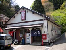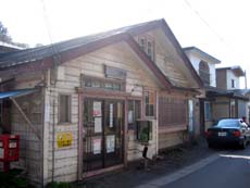 で、佐井村ではまたまた温泉(^^;; 村内唯一の温泉、千金温泉共同浴場に立ち寄ろうと思ったのだけれど、場所がいまいちわからない。原田地区の小高い丘にあるというガイドブック情報を信じ、山側(進行左側)を見ながらクルマを走らせていくものの、何の案内表示もなし。原田地区は国道に面して家が建ち並んでいるだけで、山側にも海側にも奥行きがない集落(平地が狭い)ため、そもそも山側に入っていく脇道が存在しないのだ。で、集落の外れ近くまで来た頃に…これか? という細い路地が。その路地に入ってみたものの、何やら工場(コウジョウではなくコウバ)のようなものがあるだけで、それらしい雰囲気はない。うーん…。と、ちょうど原付に乗った奥さんが通りかかったので尋ねてみると、「あ〜、この先ですよ。私も行くから連いてきて」。そ、そうですか。道はすぐに砂利道になり、その行き止まりに小さな小屋が建っている。こ、ここか。。。