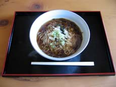 *(中右)敷地内には桑畑小学校跡碑が。 (右)風間浦村の特産品・布海苔を麺に練り込んだ《布海苔そば》(\300)を食す。うま〜(^o^)