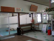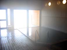 で、まずは新湯へ行ってみる。昔ながらの共同浴場といった風情で、脱衣場もレトロな雰囲気。浴場は板張りで、浴槽はもともとは木製? だったものを上からコンクリで固め(?)水色に塗ったもの。いや〜、これはいい! ザブン! とはいかず、かなり熱いと聞いていたもので“そろーり、そろーり”と浸かってみる…あ、熱いっ。。。とても身体まで浸かれず、足だけ入れてはお湯を上半身に掛け…その繰り返しで慣れてきてから、ゆっくりと浸かってみる。ふぅー(^^;; 熱いけれど成分濃厚な感じで、いいお湯です。無色透明でしょっぱい塩味。完全自噴の源泉そのままだそうで、ありがたやありがたや(笑)。