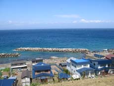 小さな漁村・牛滝集落には30分ほどで到達。ここも福浦集落と同様の立地で、周囲の山はさらに険しい。正直、よくここに人間が住み着いたものだ…などと思ってしまう(謝)。でも、ちゃんと小中学校があるんですね。校庭では子供たちが元気に遊んでいたり、商店や地区センター(?)の建物なども真新しく、集落の雰囲気は決して暗いものではありません。むしろ、先ほどの福浦集落より明るい感じ? 牛滝漁港は周辺地区と比べても漁獲高が高いそうで、交通の便は“へき地”でも、辺境の地の寒村…というイメージは集落内にいる限り薄いかも。簡易郵便局のおじさんも、ごくごくフツーに貯金事務処理をしてくれました。年に何人かはこうしたひねくれ旅行貯金派が訪れるのかもしれません(^^;;
