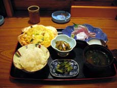 *下北名物・味噌貝焼き定食、刺身などもついて\1,000。お味はなかなか。お店のおばちゃんも親切ですた。