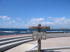 すっかりふやけた後は(笑)、大間崎へ。本州最北端の碑の周囲には、さすがに観光地らしく、他県ナンバーのクルマやバイクが何台も。写真を撮っている観光客が何組もいて、この旅で初めて、フツーの観光地に来た感じがする? 俗化してしまっていて、昨日の尻屋崎に比べて感動がないなぁ。まぁ、本州最北端に立ったという自己満足ですかね(^^;; で、これまた当然のように本州最北端のみやげ物屋で記念品と《本州最北端到達証明書》を買い、本州最北端の食堂でマグロ・アワビ・ウニ丼(\2,000)を食べたりするわけです(苦笑)。