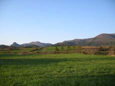 この集落跡の周囲には、それまで(それから先)の山間部、林間部がウソのような丘陵草原地帯が広がっている。柵で囲われた牧場跡らしきエリアや牧舎だったらしい建物も残り、かつては放牧などが行なわれていたのでしょうね。海から離れているため風もなく、海沿いの漁村に比べればはるかに生活しやすい環境に見えるのですが…。