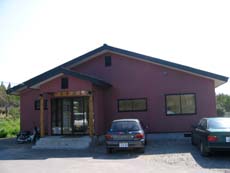 《ビジネス民宿》という肩書きのパーク下北は、むつ市内中心部、田名部のバスターミナルから大畑方面へクルマで5分ほど。着いてみると、建物の前にはトラックやワンボックスが止まっていて、駐車場は満車。500メートルほど離れたところにも駐車場(ただの空き地)があり、そこにクルマを止めて戻る。何となく、いや〜な予感。1泊\3,500だしなぁ。。。