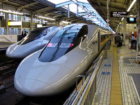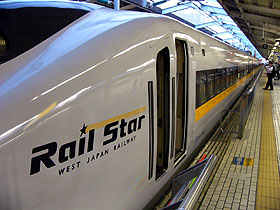 この『ひかりレールスター』の売りは、新幹線0系グリーン車用を流用した2+2シート(自由席は従来通りの3+2シート)。シート自体の出来はイマイチなものの、シート幅、シート間隔は飛行機のスーパーシート並みなので楽ちん。幅広い肘掛けも快適で、2人掛け2列配置の効果は絶大ですね。この車両が東海道新幹線にも採用されれば、嫌いな新幹線をもうちょっと利用したくなるのだけれど…。あの慢性的な混雑状況と、乗客を詰め込む大量輸送でナンボという東海道新幹線の方針を考えれば、無理な話でしょうが。