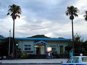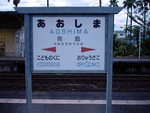 建物の中は、単なるみやげ物屋。周辺にもみやげ物屋や食堂が連なるものの、どれも朽ちた…とまでは言わないけれど、やはり“終わってる”印象ですねぇ。観光地の“バスセンター”ならあるだろうと思っていた、コインロッカーや荷物預かり所もない。徒歩3分程度のJR日南線青島駅まで行ってみたものの、こちらはさらに寂れているので…。