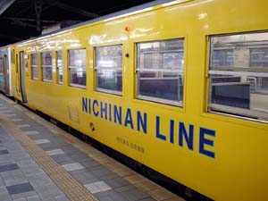 ちなみに、日南線用キハ40には全面を鮮やかなイエローに塗装された専用車両も。サイドに紺色で“NICHINAN LINE”と描かれたもので、日南線沿線自治体が1両につき50万円を負担して再塗装しているのだとか。