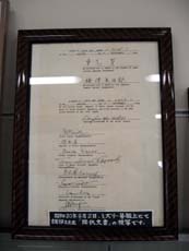 *(左)アメリカ戦艦ミズリー艦上で交わされた降伏文書のコピーも展示される(驚)