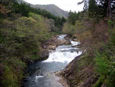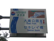 脇野沢からは国道338号を川内町まで戻り、県道46号(川内佐井線)を湯野川方面へ向かう。この県道は川内川に沿って林間部を走る快適なルートで、途中には渓谷遊歩道も整備されている。もっとも景観が良い大滝には駐車スペースやトイレも設置されているので、ちょっと休憩。小雨模様なので滝を見ただけですが、天候が良ければ歩いてみたいところ。