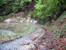 ゲートなどはなく、特に通行止め、閉鎖などの様相もない。もちろんダートではあるけれど。。。以前は四駆に乗っていたため、林道を走りに行った経験も何度か。林道の走り方はそれなりにわかっているつもりだし、フツーの人に比べれば林道ダートへの抵抗感が薄いこともあって、そのまま進んで行くことに。