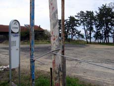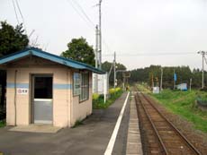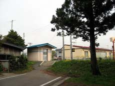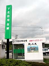 ここからすぐ、国道沿い左手に妙な空き地がある。明らかに建物が建っていた跡で…バス停を見ると《下北温泉前》とあり、2003年11月まで営業していた下北温泉、ドライブイン下北・民宿松風荘の跡なのでしょうね。ほとんど更地になっているため、その面影はありませんが…。その泉質は評判だったそうで、城ヶ沢温泉と言い、この地区からいい温泉が消えてしまうのは残念なところ。