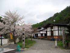 湯野川集落に入るとすぐ、左手に廃校となった湯野川小学校が。校庭の桜の木が満開になっていて、思わず足を止めました。今回の下北半島では各地で満開の桜を見かけたんですが、開花時期の遅さからしてヤマザクラなのかな? その校庭の片隅には《閉校記念之碑》が…まだ新しく、いつ廃校になったんでしょうね。ちょっとのぞいてみると、廊下にたくさんの写真が飾られている校舎内もキレイで、今すぐにでも授業ができそうな雰囲気。下北の各地で見かけた廃校はもっと朽ちかけているところが多く、と言うか、廃校ではないのにもっと廃れた雰囲気のところも多かったからですからね。どなたかが大切に管理されているのでしょうが、それがまた余計に物悲しかったり…。