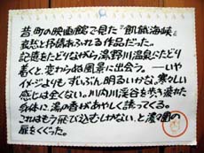 また、館内には映画『飢餓海峡』のチラシや、歴史を感じさせる撮影風景などのモノクロ写真が飾られていました。水上勉の同名小説を原作にしたこの作品、小説の舞台でもある町内の湯野川温泉でロケが行なわれたんですね。他にも、JRバスの運行が廃止された川内小学校(町中心部)−湯野川間には川内交通のバス時刻表(4.5往復)が貼られているなど、観光客アピールとともに町民へも広く利用を促していこうとする町の姿勢が伺えますね。これまた好印象。