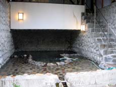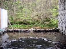 大滝からほどなく、町営温泉施設・ふれあい温泉川内(和白温泉)に到着。浴室には五角形の浴槽と正方形の小さな浴槽の2つがあり、五角形の浴槽からは湯がとうとうと流れ出している。掛け流しスタイルで温泉らしいですね〜。やや熱めだけれど適温? な茶褐色気味の湯はやや塩味で、濃厚さもかなりいい感じ。本来は月曜定休のはずなのにこの日は臨時営業していたらしく、いい湯に出会えてラッキーでした。夏の夜には脇の小川でホタルが見られるそうで、また来たいかも。その時期は営業時間を21時まで延長するそう(通常20時)。