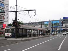 *(左)岡山駅前にて (中)(右)城下電停付近にて