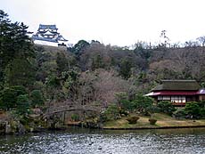 天守閣からは、来たのとは反対側の西の丸方面に降り、裏門である黒門から出て玄宮園へ。天守閣にはそれなりに観光客の数も多かったのだけれど、その大半は表門と天守閣を往復するだけで帰ってしまうよう。城の裏側にあたる西の丸側は訪れる人も少なく、静かないい雰囲気。