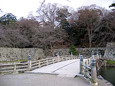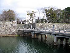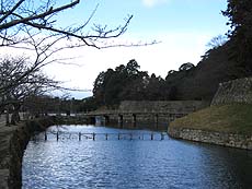 【↑(左)京橋 (中左)中壕 (中右)内壕 (右)内壕にかかる大手橋】