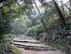 【↑(左)西の丸跡 (右)城裏側は彦根山をつづら折りに登っていく山城の風情】