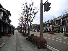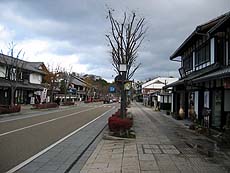 夢京橋キャッスルロードとは、彦根城・旧中濠に架かる京橋から南西へ伸びる約350メートルの通りのこと。道路両側の商店街は江戸時代の町並みを再現した建築物で、歩道や案内板なども観光客向けに整備されている。彦根城の観光スポットとして整備された…にしては、閑散としていていまいち活気が感じられないのも確か(^^;; 城の正門とは離れているし、個人客はここに立ち寄らないケースも多いのでは? まぁ、観光バスなどが乗り付けるシーズンには賑わうんでしょーが…。