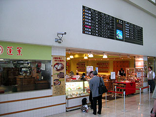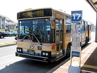 バスの発車までは時間があるため、空港内の551蓬莱飲茶CAFEで朝食。豚まん1コ、しゅうまい2コ、ウーロン茶、お饅頭の551セット、570円。午前中はセットメニューしかないらしい。うまー♪ ただ、空港内で食事ができる551蓬莱は、ANAが発着する南ターミナルの南端のみ。JALで北ターミナルに到着すると、かなり歩かなければならないのが難ですね。