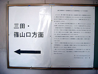 【↑ JR宝塚駅ホームには、事故に関するお詫びと暫定時刻表が貼られていた】
